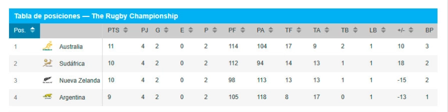 Tabla de posiciones Rugby Championship 2025