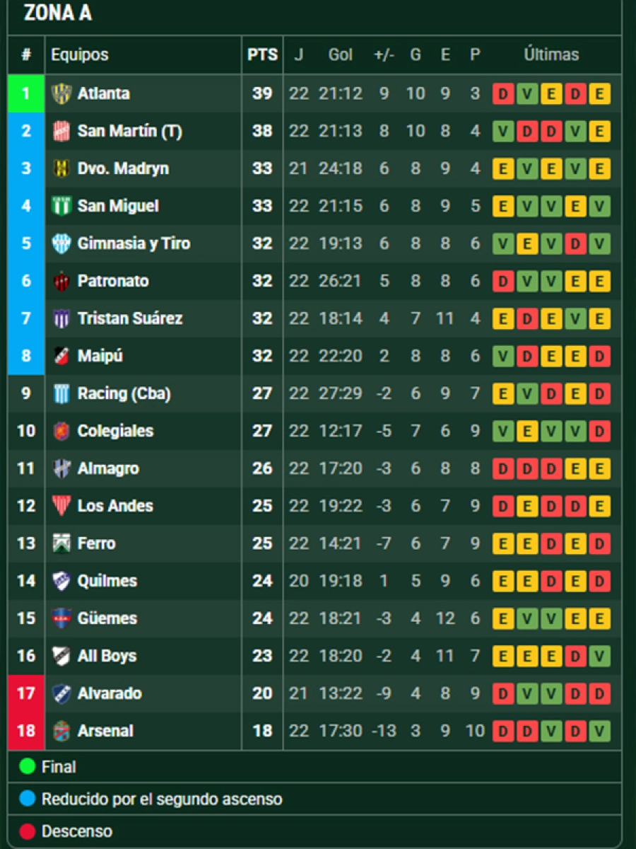 Otro dato relevante de la jornada fue que Deportivo Madryn (3º) y San Miguel (4º), ambos ubicados por encima de Patronato, están apenas un punto arriba en la tabla, lo que demuestra lo ajustada que está la pelea por los puestos de clasificación.