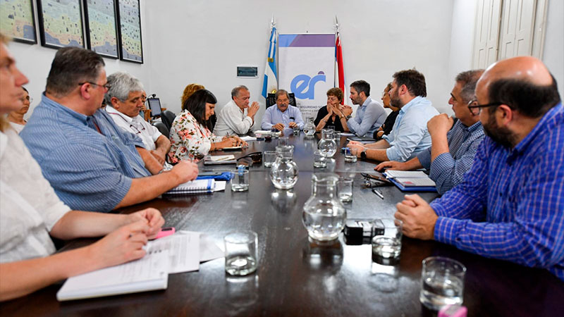 Encabezaron la reunión con los estatales, en el Salón de Gobernadores, el secretario de Trabajo, Ángel Zacarías, y el director de Trabajo, Pablo Pagnone.